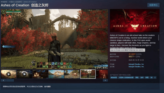 自 2026 年 2 月 2 日起,《创世灰烬》已无法在 Steam 平台购买,新玩家无法再获取这款仍处于“抢先体验”阶段的作品。同时,SteamDB 页面显示该游戏被标注为“已取消”。尽管现有玩家目前仍可登录服务器,但外界普遍认为这一状态难以长期维持。