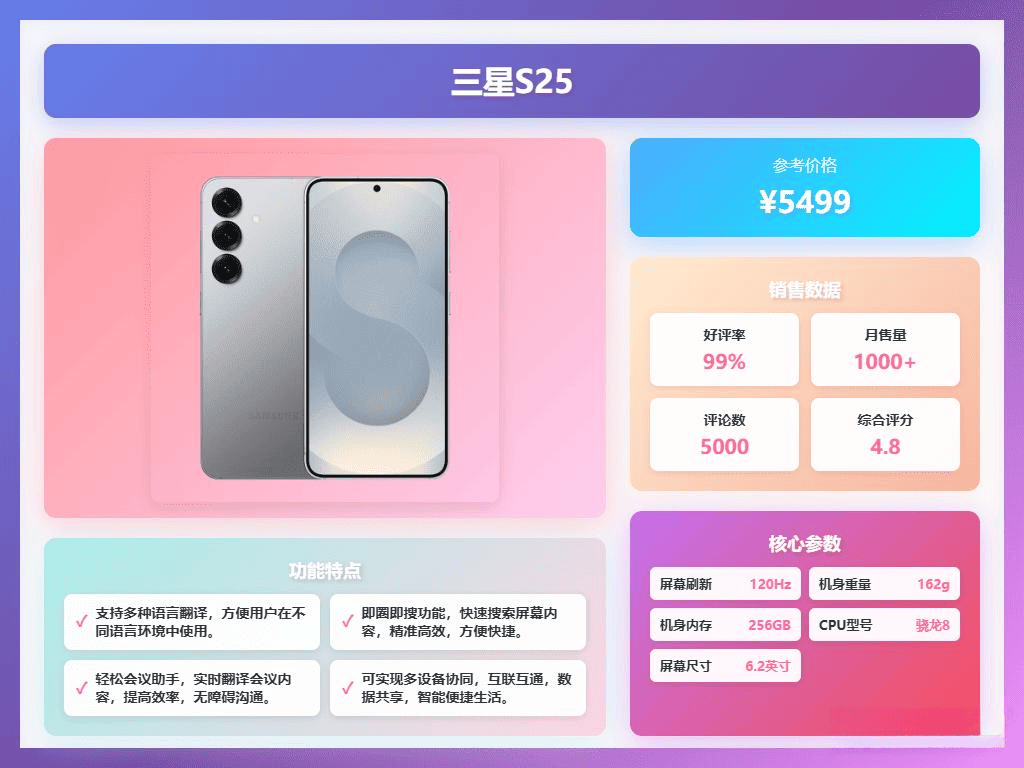 1️⃣强悍性能:三星搭载骁龙8至尊版处理器,确保日常使用和娱乐的流畅运行。12GB大内存让你在玩游戏、看视频和多任务处理时都能轻松应对,不会出现卡顿现象。